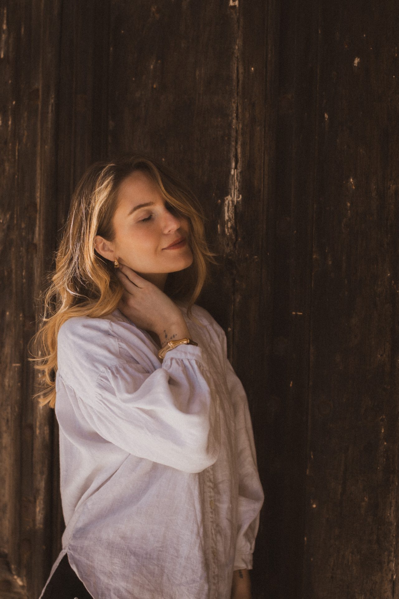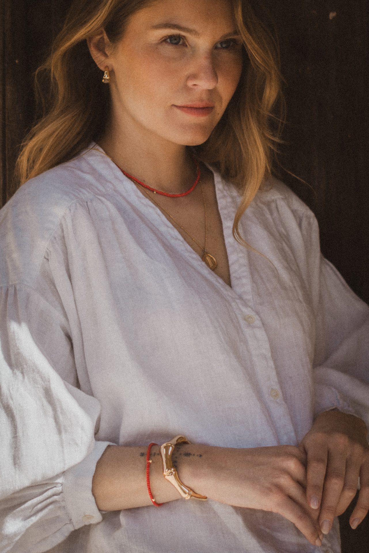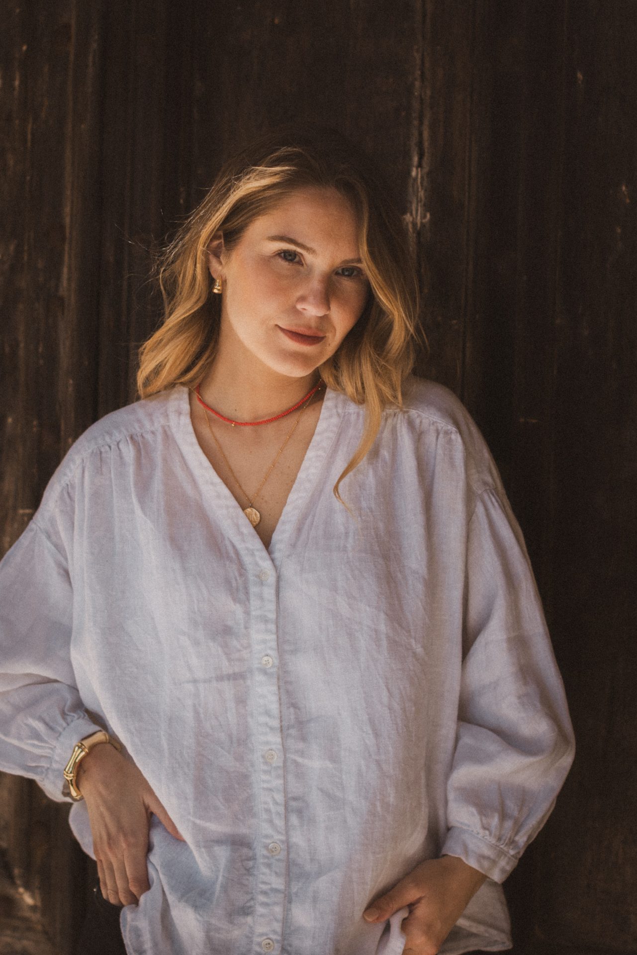 En luftig, lätt oversize blus med vackert rynkat axelparti som ger ett mjukt och kvinnligt fall. V-ringning och knäppning fram och vida ärmar med manschett. Broderat hjärta i nacken som en fin detalj.
