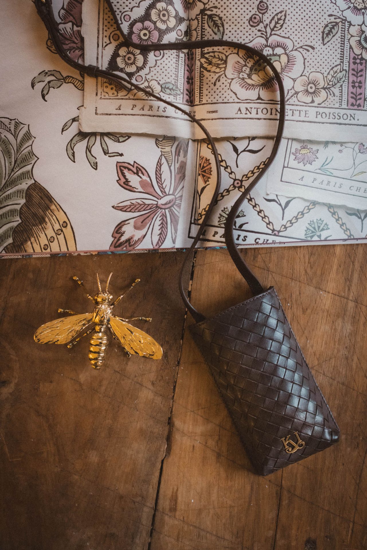 Mobilväska i handflätat halländskt lammläder som förenar funktion och elegans. Det flätade lädret ger en mjuk, följsam och unik struktur som tydligt speglar gediget hantverk.