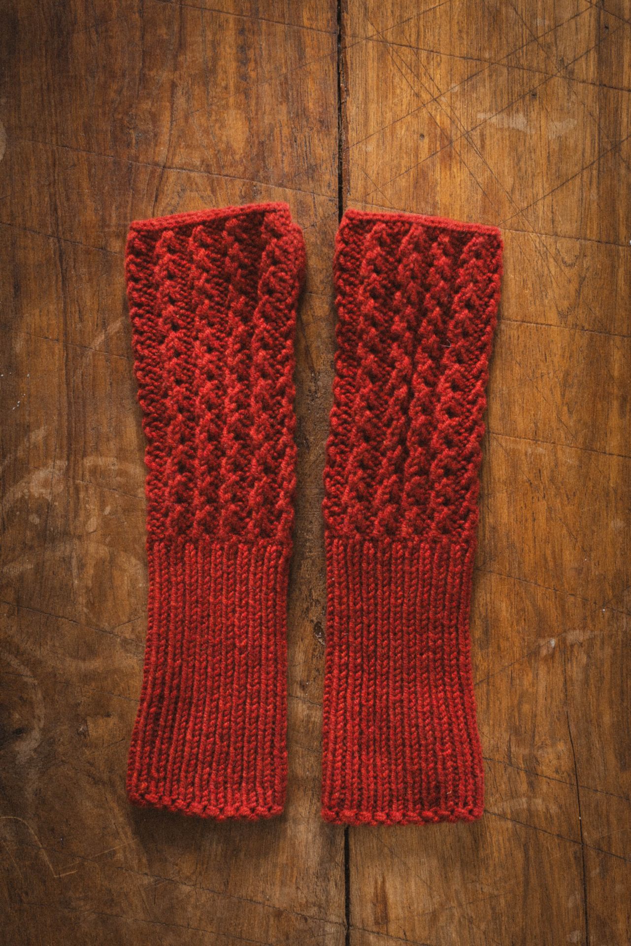 Ribstickade handledsvärmare i en blandning av finaste merinoull och kashmir. Stickade för hand.